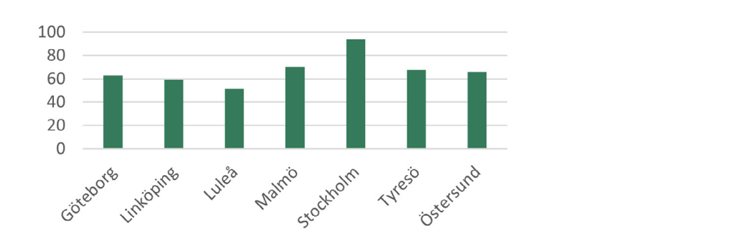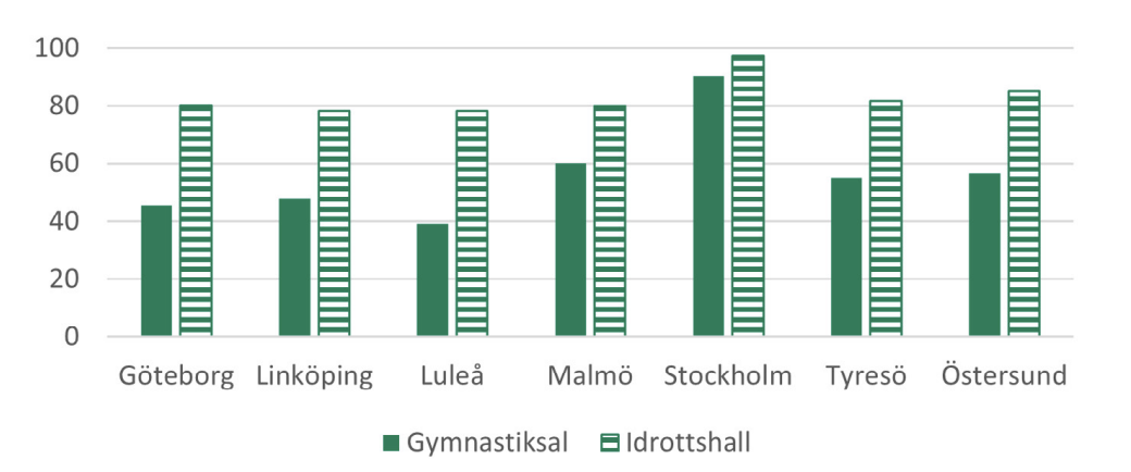Först redovisas bokningsgrad för enskilda kommuner. Här studeras samtliga kommunala anläggningar, även sådana som inte ligger på skolfastigheter.