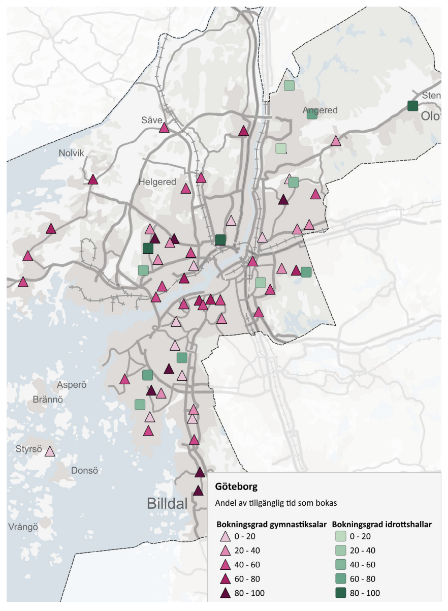 Därefter görs en fördjupad studie kring bokningsgrad för enskilda anläggningar på skolfastigheter i Göteborg och Linköping.