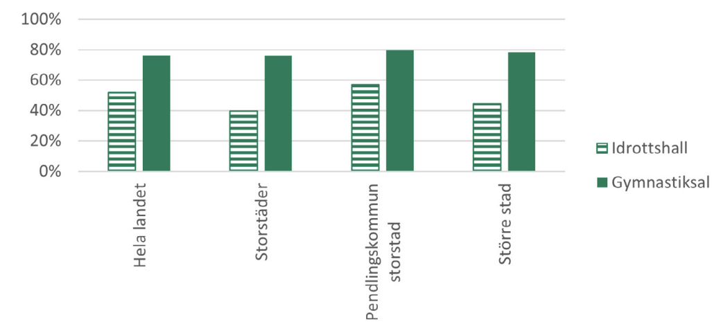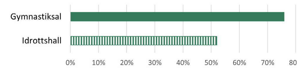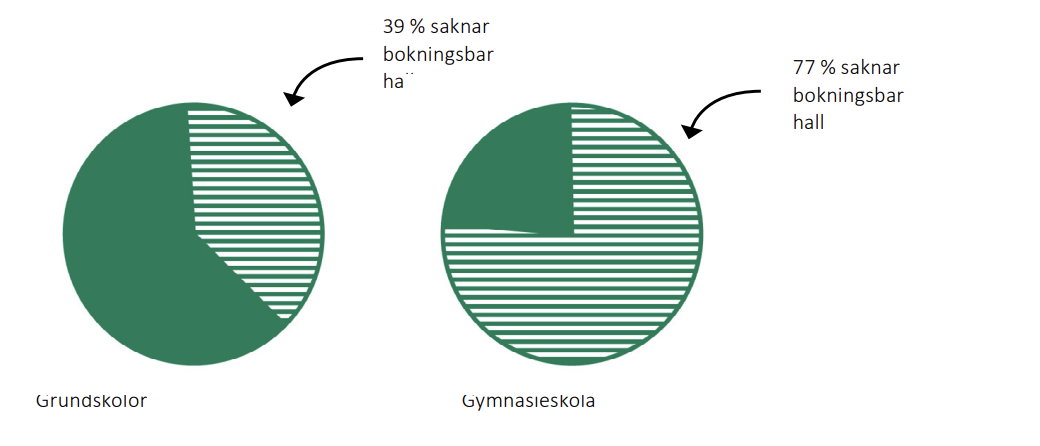 Riksidrottsförbundet kartlägger inte alla bollplaner och hallar utan har definierat vissa typer av anläggningar. Definitionerna presenteras på sida 17. Avgränsningen innebär att vissa typer av anläggningar som kan förekomma på skolor inte finns med i kartläggningen. Några exempel är bollplaner med grusunderlag eller motionslokaler som inte är avsedda för basket, handboll, innebandy eller volleyboll. Riksidrottsförbundets kartläggning fokuserar på anläggningar som är tillgängliga för idrottsrörelsen. Det innebär att kartläggningen i princip bara innehåller anläggningar som är allmänt tillgängliga för bokning. Vi kallar anläggningarna bokningsbara i den här utredningen, för att skilja dem från anläggningar som inte är tillgängliga för idrottsrörelsen. Om en skola har en hall eller bollplan som inte går att boka finns den alltså inte med i underlaget.