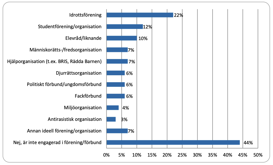 Undersökningen baseras på Ungdomsbarometern 2025, där ett antal nya frågeställningar om ideellt engagemang ingår, och jämförelsedata från våra tidigare mätningar. Totalt 17 445 unga har besvarat Ungdomsbarometern 2025, som genomfördes mellan 3 oktober och 4 november 2024. De frågor som rör ungas engagemang har besvarats av 1 533 personer. Urvalet för studien är riksrepresentativt avseende kön, ålder och var i landet ungdomarna bor. Studien avgränsar sig till svenskar i åldrarna 15–24 år.