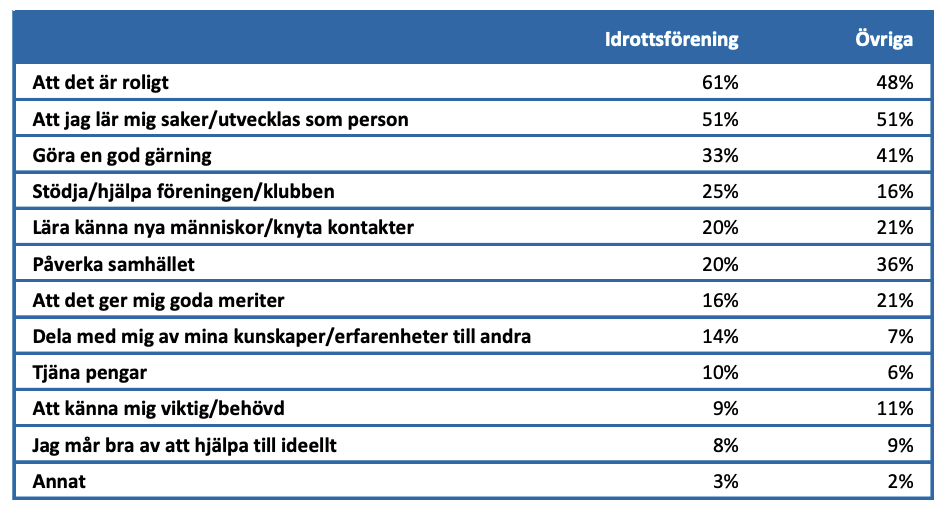 - Ungas ideella engagemang inom idrottsrörelsen: Vilka ideella insatser gör unga, varför och i vilken omfattning? Avsnittet bygger på data särskilt insamlade på uppdrag av CIF. Det innehåller därför resultat som aldrig tidigare publicerats, till exempel om ungas inställning till ekonomisk ersättning som incitament för ideellt arbete.