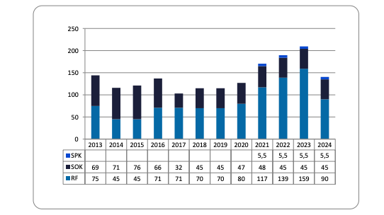 Källa: RF:s bidragsfördelning och SOK:s årsredovisningar