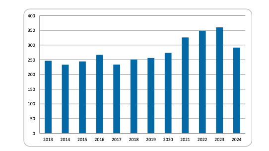 Nivån på de ekonomiska stöden har varierat över tid. Figur 1 illustrerar utvecklingen av stödet till specialidrottsförbunden. Noterbart är att beloppet 2013 var lika högt som för den samlade elitidrottssatsningen 2009–2012. Detta på grund av att RF lyckades tillsätta medel också efter att det särskilda anslaget från regeringen upphört. Under de närmast följande åren sjönk sedan stödet till specialidrottsförbunden, innan RF åter lyckades justera elitidrottsstödet uppåt. Tack vare det extra statliga stödet för att mildra effekterna av coronapandemin ökade bidraget till elitidrotten väsentligt under 2021–2023, innan det inför 2024 föll till en lägre nivå igen. Här bör nämnas att det med elitidrottsstöd avses nationellt koordinerade stöd som fördelas till specialidrottsförbunden för internationell elitverksamhet, enligt hur det beräknas i den tidigare nämnda internationella studien Tokyo 2020.37 Ur de så kallade coronapengarna fördelades ett ekonomiskt stöd också till nationell elitidrott, exempelvis till elitföreningar i fotboll och ishockey. Detta stöd var dock ett kompensationsstöd för uteblivna intäkter, och kan därmed inte anses utgöra stöd till internationell elitidrott.