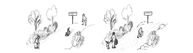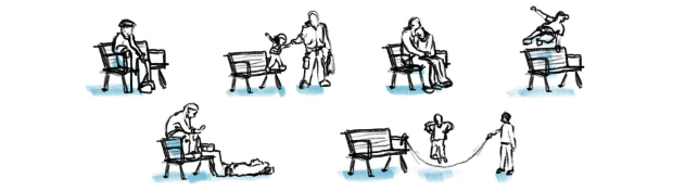 Vi påverkas inte bara av en plats utan är även i allra högsta grad medskapare av den. I tid och rum pågår många gånger ett ständigt flöde av möten, rutiner och beteenden. Dessa mönster, som ofta är så för givet tagna att vi knappt tänker på dem, liknar den amerikanske platsforskaren David Seamon med en dans, något han kallar för ”platsbalett” (place ballet).22 Det är miljöer där vi enkelt springer på varandra, där bänken i parken blir till en mycket lokal mötesplats och hundägare nickar igenkännande till varandra på sina dagliga promenader. De här vardagliga rutinerna i relation till andra människor skapar igenkänning och en känsla av sammanhang. Det kan också bidra till att människor håller ett extra öga på platsen och bidrar till dess underhåll. Utifrån detta perspektiv kan det när man planerar en miljö vara värt att ställa sig frågan vilka grupper av människor som är dess ”platsdansörer”, och om sådana saknas skapa förutsättningar för att locka dem till platsen. Ett exempel är att etablera möjligheter för odling, vilket vi gjorde i projektet Kusbyvägen som beskrivs längre fram, där odlarna genom sin närvaro blir medskapare av platsen och också dess ambassadörer, vilket i sin tur ligger till grund för en trygg upplevelse för fler.