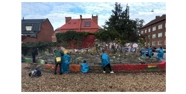 Växtvärket tror på konceptet medskapande underhåll och skötsel, något som tillämpas bland annat i Belgien5 . Grundtanken är att ägarskap kan utvecklas genom aktiv omsorg om platsen, även när man inte kan påverka dess grundläggande utformning. Ett praktiskt exempel är när en skolklass tillsammans med ett skötselföretag tar ansvar för skolgårdens skötsel och grönområden. Detta skapar en långsiktig process och olika grupper kan rotera ansvaret över tid.