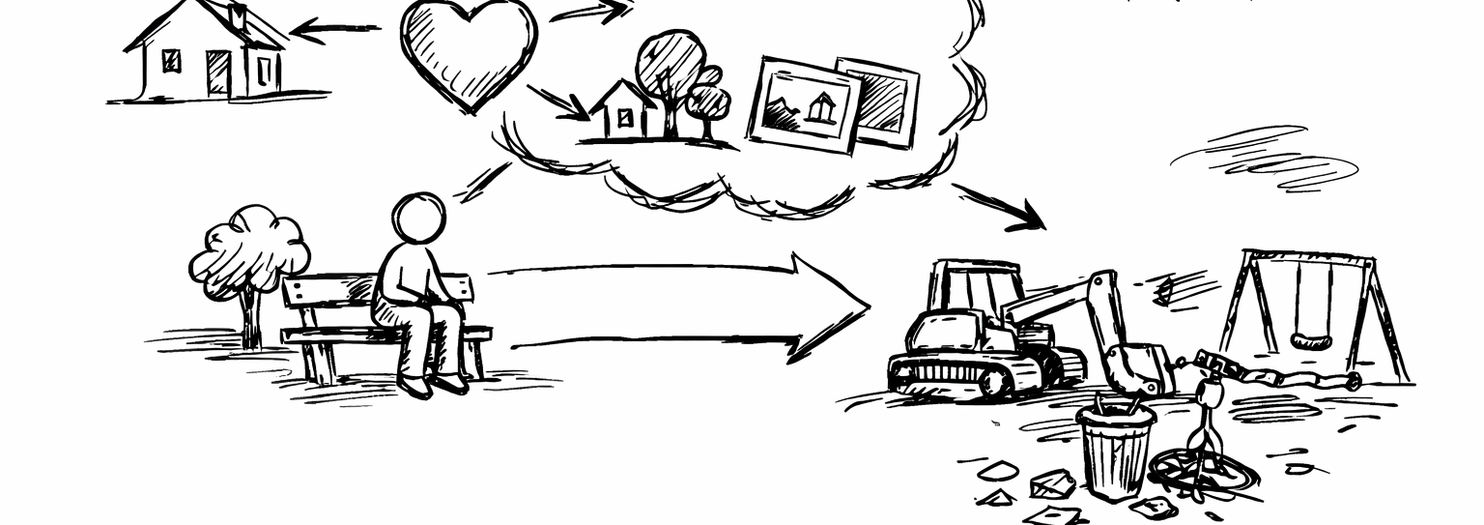 Platser rymmer minnen, beteenden och gemenskaper. I mötet med en plats formar vi den, samtidigt som den formar oss. Därför kan förändringar väcka starka reaktioner – det kan handla om ombyggnader, rivningar, nedskräpning eller sabotage. Allt detta kan upplevas som en förlust av både miljö och minnen.